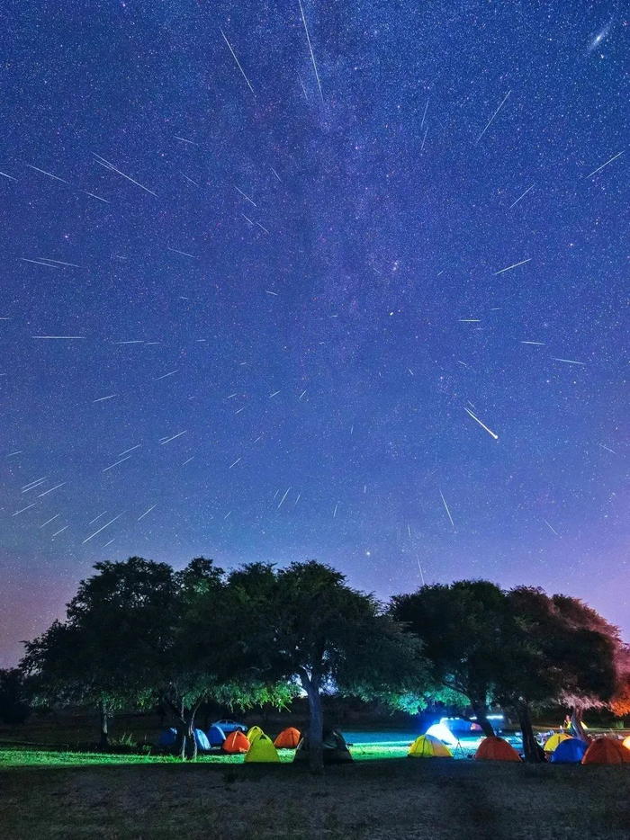 在拍摄时,摄影师们可以将相机固定在三脚架上,对准要拍摄的天区,随后把焦距设定为无穷远,相机广角镜头调整为长时间曝光,最后再把相机的光圈调到17左右,感光度一般不超过500。一切准备就绪,静待流星闯入镜头即可。