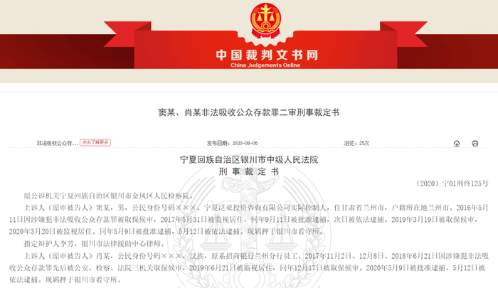 一审宣判后,窦某和肖某均提出上诉,后窦某在审理过程中又申请撤诉。2020年7月10日,二审法院宁夏回族自治区银川市中级人民法院作出终审裁定,准许窦某撤回上诉,驳回肖某的上诉,维持原判。