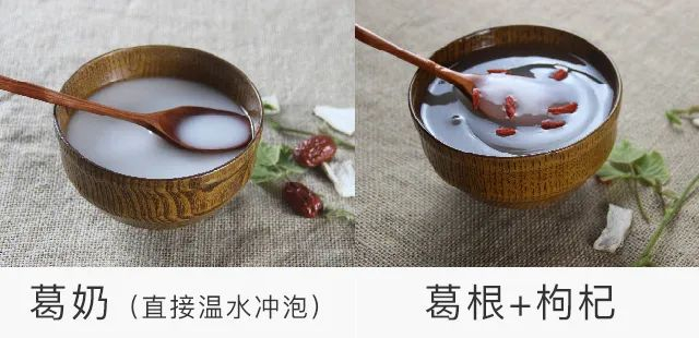 取20克葛根粉加上适量的牛奶之后直接用温水冲泡,入口后,淡淡的葛香和奶香交织,尝一口你就忘不了。