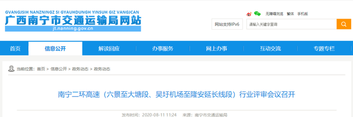 8月12日,记者从南宁市交通运输局了解到,近日,该部门组织召开了南宁二环高速(六景至大塘段、吴圩机场至隆安延长线段)工程可行性研究报告行业评审会议。两个项目建成后将与已建成通车的贵港至隆安高速、六景至钦州港高速、吴圩机场至大塘高速,以及正在建设的六景至宾阳高速、吴圩机场至隆安高速共同形成南宁市第二高速环路,全面提升首府南宁内外交通衔接水平,进一步强化南宁枢纽地位。