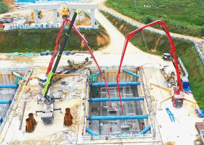 南宁南过境线(吴圩至隆安)高速公路沙尾左江特大桥拱座浇筑现场