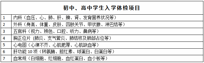 8月24-28日国防与安全教育社会实践活动(军训)另外,新生请家长带学生假期到区、县级以上正规医院进行体检,体检项目如下: