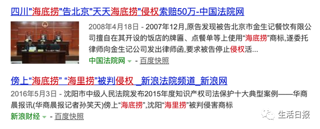 此前,“海底捞”就曾经起诉过沈阳一家名为“美美海里捞欢乐火锅”的店铺。