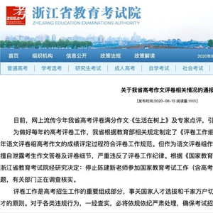 原标题:高考满分作文评卷组长被举报,浙江省教育考试院最新回应!