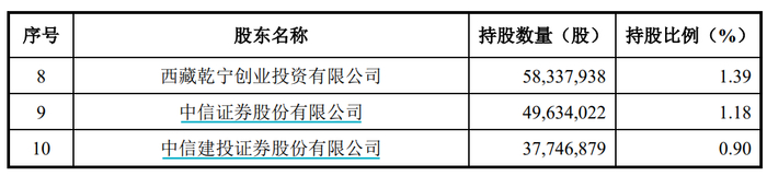 第一创业此次非公开发行的新股登记完成后,中信证券、中信建投进入第一创业前十大股东名单。其中,中信证券持有第一创业4963.4万股,持股比例为1.18%;中信建投持有第一创业3774.69万股,持股比例为0.9%。
