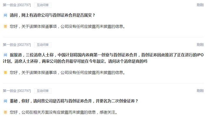 首创证券则表示:部分媒体刊登的有关首创证券与第一创业合并的消息完全为不实之词。