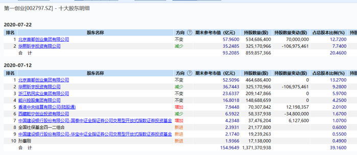 第一创业的第一大股东同为北京首都创业集团,截至一季度末持股比例13.27%。