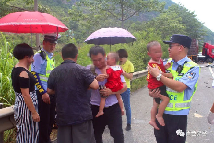 7月30日14时40分,一辆号牌为浙B1****的重型半挂货车在G80广昆高速百色往南宁方向距离田阳出口还有五公里处突然失控,越过道路中心隔离护栏,冲入对向车道,导致多辆车碰撞,其中一辆小汽车内的两名乘客轻微受伤。
