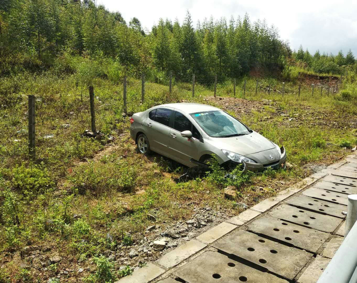 当天上午10时30分,在兰海高速北海往南宁方向2074公里(距离大寺收费站6公里左右),一辆桂N小车途径事发路段时,因雨天路面有积水,车辆打滑失控冲出路面,小车车头受损。