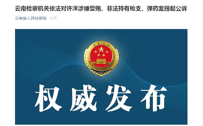 涉嫌受贿、非法持有枪支弹药!云南迪庆州委原副书记许洋被公诉