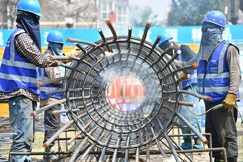 2019年4月11日,西安小寨9万立方米海绵城市建设施工现场。