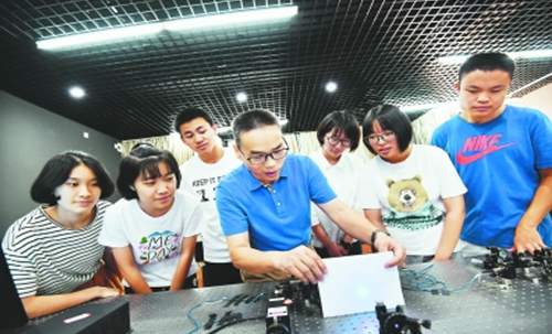 年轻教师蔡信乐说:“设备到位后,潘建伟院士团队派人过来亲自辅导。立灿老师是带头啃理论,然后一起学实验操作。我们全体物理组老师一个个地过关,每一个实验步骤都是一点点地学。”