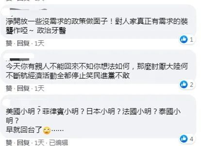 针对台方挤牙膏式政策,有网友评论“美国小明?菲律宾小明?日本小明?法国小明?泰国小明?早就回台了……”