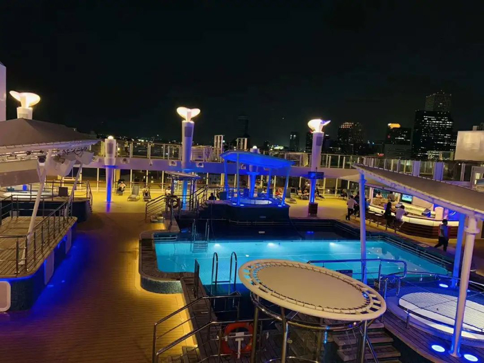 游客没有了,海员住进客房,那些平时供游客玩耍、休息的泳池、攀岩、水滑道允许他们自由使用了。但是无聊、孤独。