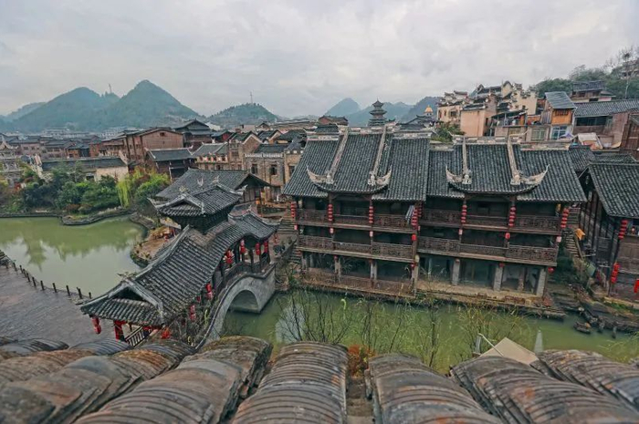 镇远古镇是贵州省黔东南苗族侗族自治州镇远县名镇,位于舞阳河畔,四周皆山。河水蜿蜒,以“S”形穿城而过,北岸为旧府城,南岸为旧卫城,远观颇似太极图。两城池皆为明代所建,现尚存部分城墙和城门。城内外古建筑、传统民居、历史码头数量颇多。