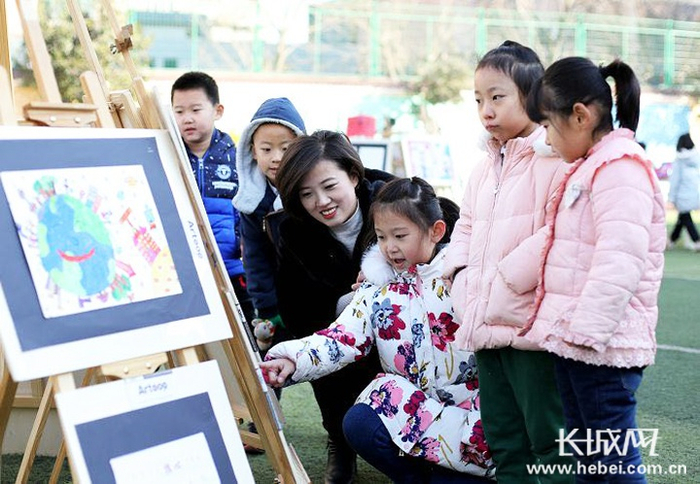 衡水市新苑小学举办的以“平‘语’近人”为主题的绘画、手工作品展。