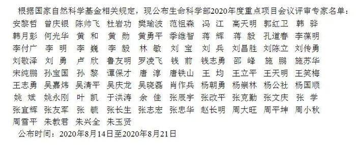 关于公布生命科学部2020年度重点项目会议评审专家的通告