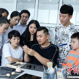 中新网成都8月14日电(吴平华 起钰婷)捏、搓、揉、掀,再反复用两三个尖头、扁头不一的工具,点、切、刻、划、挑……一团鸡蛋大小的面团,经过四川省雕塑糖艺大师施明宽双手的加工塑形,几分钟时间,便成了一个十分传神的弥勒佛头像。学员们踮起脚尖、伸长脖子,紧盯着他的每个动作……14日,在成都·施明宽艺塑工作室,施明宽正在给学员们传授面塑技巧。