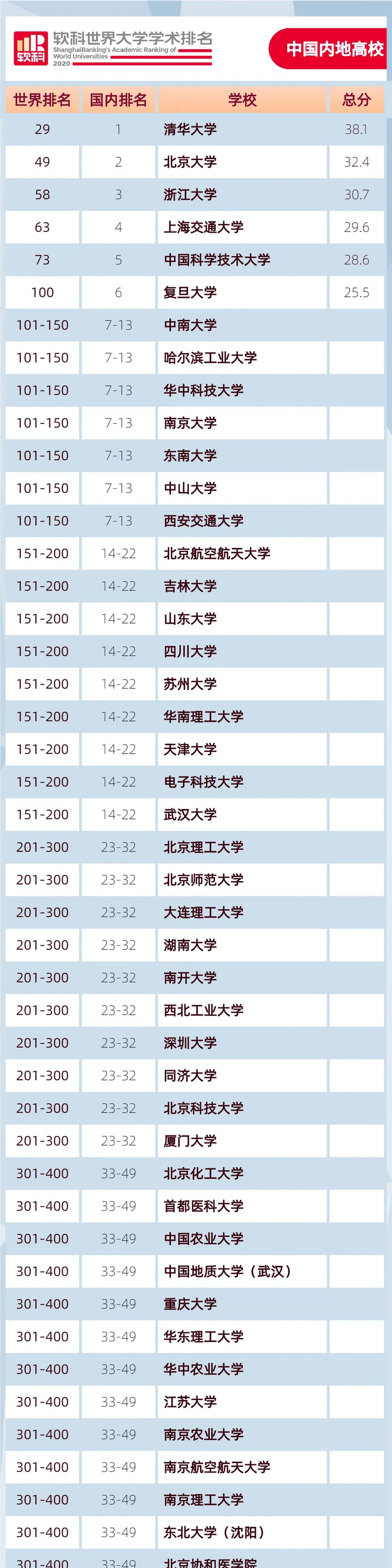 随后是位居第58名的浙江大学和63名的上海交通大学