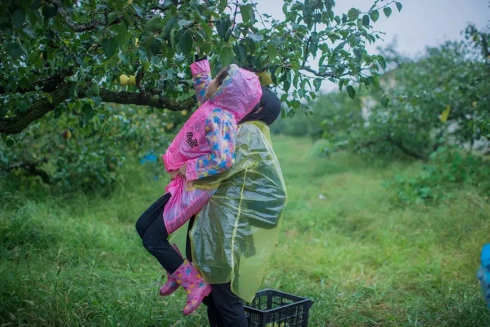 丰收时节,没有农药的干扰,来梨园的游客总是擦一擦就直接开吃啦~