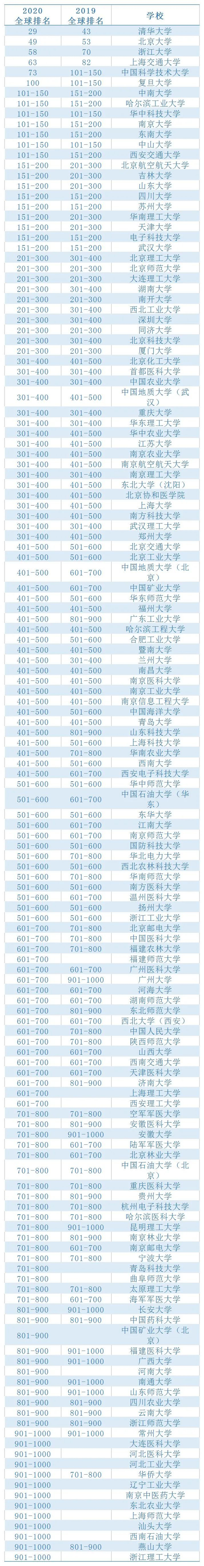 2020软科世界大学学术排名全球1000强中的中国内地高校