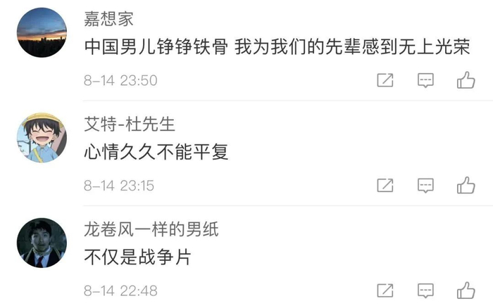 “今年第一次进影院看电影,也是第一次全程戴着口罩看电影,因为是期待已久的《八佰》!震撼到我,很精彩!绝对值得在影院看!”