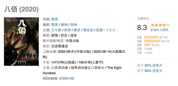 导读:《八佰》的上映过程,前后拉长到一年多。一轮轮似是而非的消息之后,片方终于正式定档,宣布于8月21日全国上映。