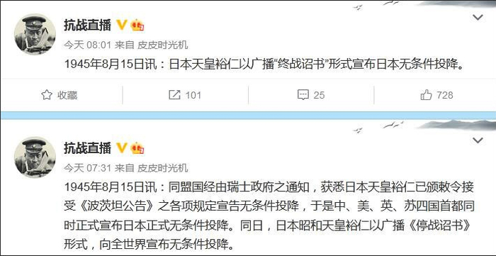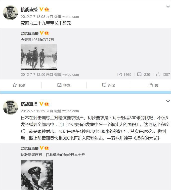 原标题:“直播”抗日战争,这个微博账号坚持了8年