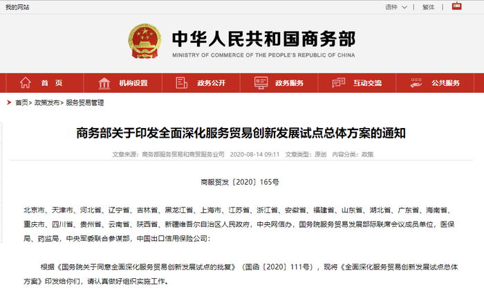 8月14日,商务部官网发布《商务部关于印发全面深化服务贸易创新发展试点总体方案的通知》《通知》表示,在“全面深化服务贸易创新发展试点任务、具体举措及责任分工”部分提出:在京津冀、长三角、粤港澳大湾区及中西部具备条件的试点地区开展数字人民币试点。其中,全面深化试点地区为北京、天津、上海、重庆(涪陵区等21个市辖区)、海南、大连、厦门、青岛、深圳、石家庄、长春、哈尔滨、南京、杭州、合肥、济南、武汉、广州、成都、贵阳、昆明、西安、乌鲁木齐、苏州、威海和河北雄安新区、贵州贵安新区、陕西西咸新区等28个省市(区域)。(央视新闻)