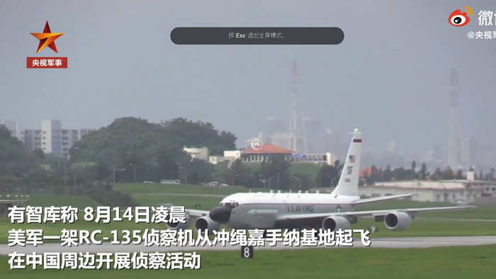 据@南海战略态势感知 ,14日凌晨4点,美军一架RC-135侦察机从冲绳嘉手纳基地起飞,在中国周边开展侦察活动,此行为可能与监视中国军队近期的演练有关。数据显示,美军机7月现身南海67次。(央视军事)