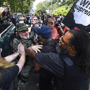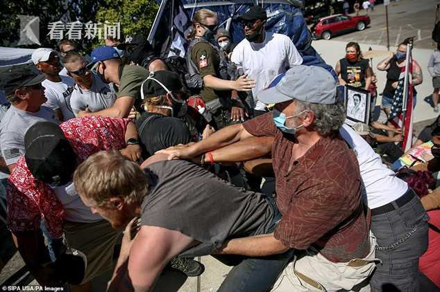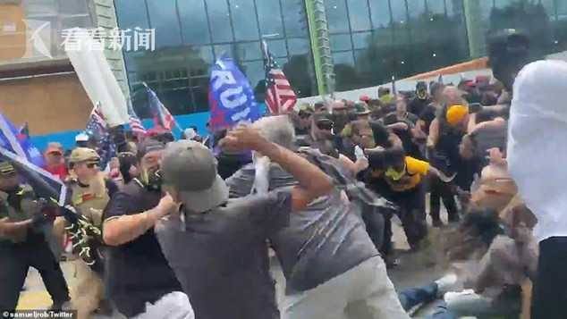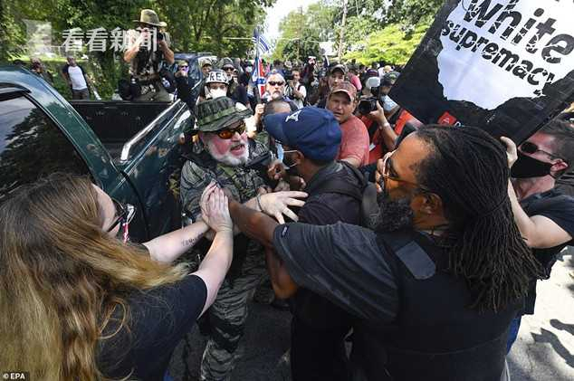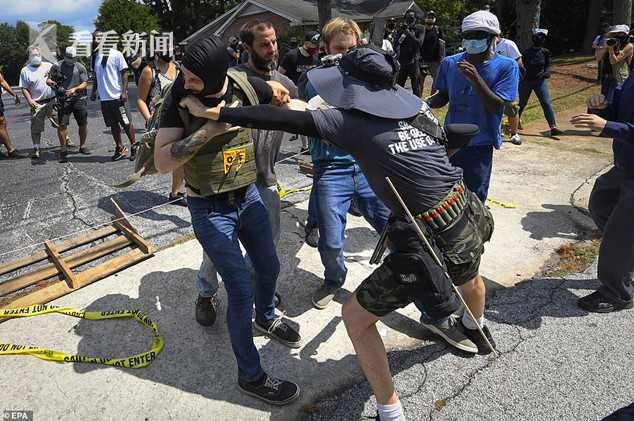 当天,美国种族歧视最严重的佐治亚州首府亚特兰大市郊外爆发了白人右翼组织与反种族示威者的冲突,此外,从西部的波特兰到东部的迈阿密,美国多个城市同时发生了白人右翼团体与反种族示威群众大打出手的场面,美国媒体描述称现场如同战场一样。