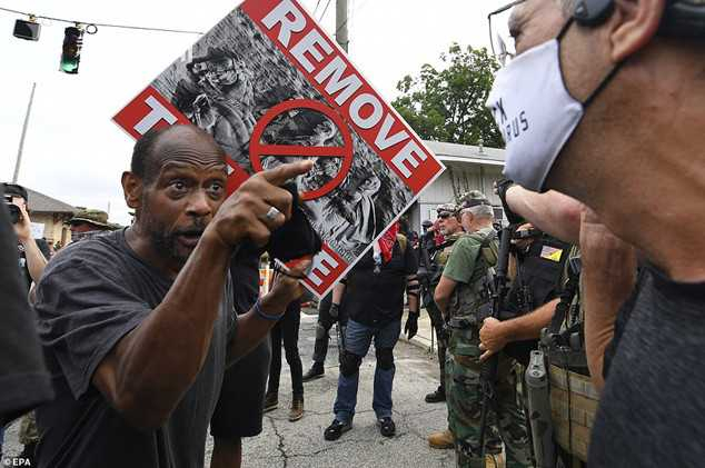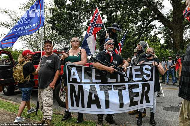 在佐治亚州,亲南部同盟和白人至上主义团体的成员手持武器和邦联的旗帜,不顾有关方面的禁令,来到拥有“南部同盟纪念雕像”的亚特兰大郊外石山公园,举行"保卫我们的历史和第二修正案权利"的集会。