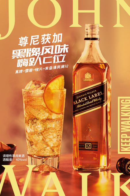 尊尼获加黑牌在创立之初就致力于让想品味人生新味的人更好地探索威士忌浓郁、大胆的风味,用百年的工艺与匠心打造成为调配型威士忌的经典之作。黑牌Highball通过简单的配方,将尊尼获加黑牌复杂深邃的口感更立体地激发出来。黑牌+雪碧+橙片的经典搭配,充分发挥黑牌馥郁的黑色水果香气与香草的甜美,清爽满分,方便易饮。无论是跨年派对,组团开黑,电影院刷片,毕业旅行,或是年底加班,黑牌Highball都是上佳的选择。更多创新风味,如加入凉茶、乳酸菌饮料等,带来黑牌Highball丰富的个性。