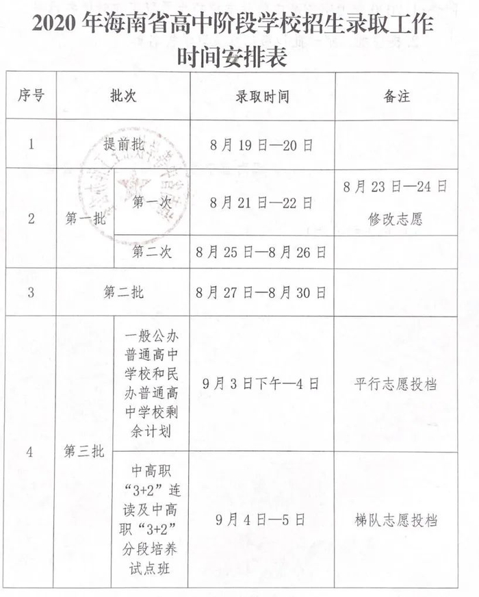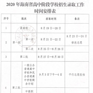 原标题:海南中招录取工作明日开启!4批次录取时间公布→
