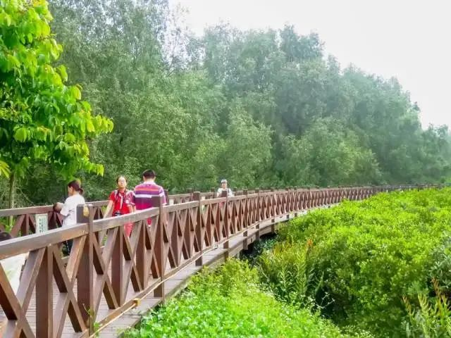 沿景区内徒步栈道可体验公园范围内湿地类型多样,红树林生长茂密,生物群落繁多。经初步调查,共有高等植物283种,其中湿地植物47种,包含红树植物17种。动物有340多种,其中鸟类87种,国家Ⅱ级保护动物7种。
