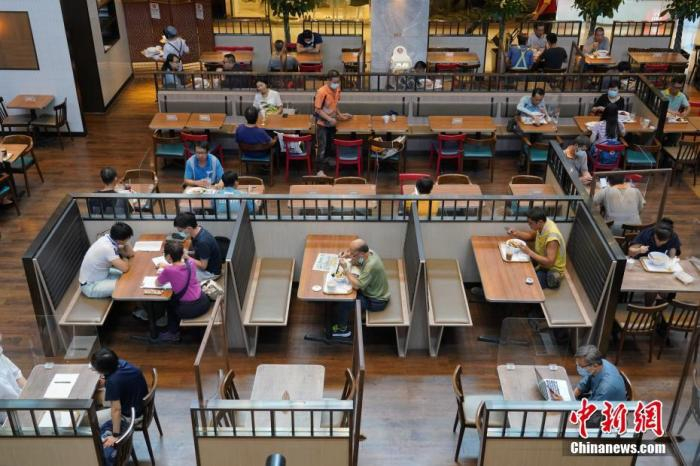 资料图:香港一家餐厅食客在堂食。 中新社记者 张炜 摄