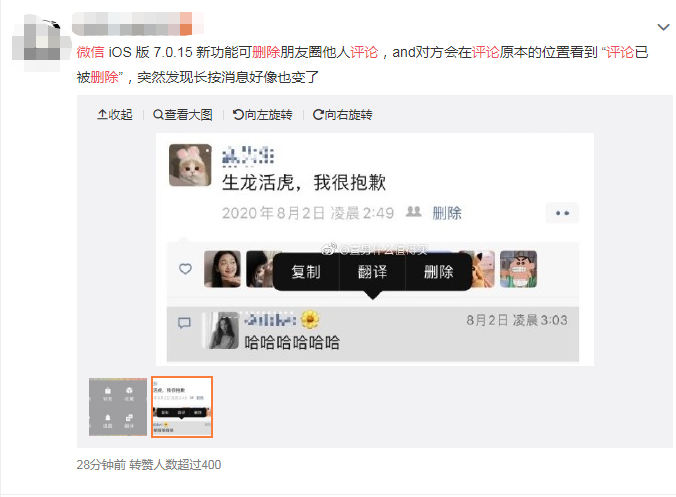 朋友圈终于可以删评论了,但网友更关注的是……