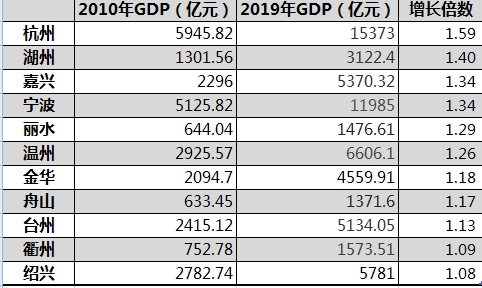 从2010年来浙江各市GDP总量的变化来看,浙江南北发展差距也较明显。近十年,浙江GDP增长较快的地市是杭州、湖州、嘉兴和宁波,全部位居杭州湾沿岸;增幅后三位城市中,除了绍兴,台州和衢州都位于浙南、浙西南,此外温州的增速也不快。