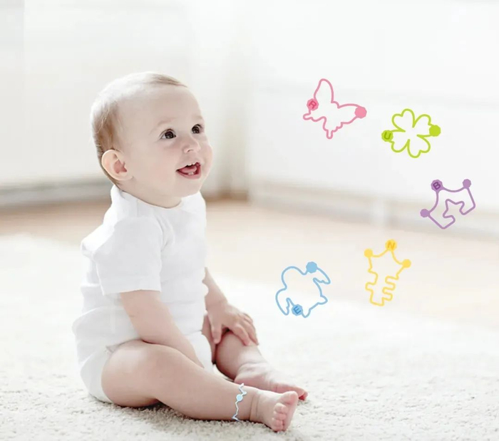 这种凹凸形状也方便悬挂,对于月龄比较小的宝宝,不想直接戴在手腕上的话,可以挂在推车后面或者睡觉时候挂在蚊帐上用。