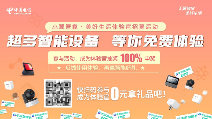 为进一步聚焦用户体验,提升智慧家庭服务,8月16日,中国电信联合智能家居头部厂商,在全国范围内举办首轮“美好生活体验官招募”活动,邀请广大用户化身小翼管家产品体验官,共同为便捷化、智能化家庭“最后一米”献计献策。