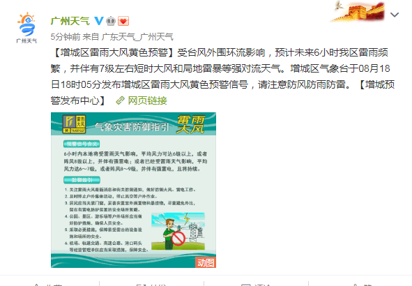 受其影响,18日夜间至19日广州将有大到暴雨,其中南部雨势较大;我市南部及港区风力已经逐渐增至6级左右,预计今晚中南部地区风力将继续增大至6-8级、港区8-10级,大风持续至19日下午(持续时间20个小时左右)。