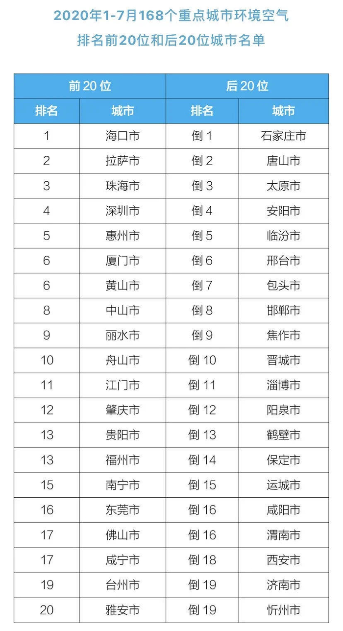 日前,生态环境部公布了今年1月-7月全国和京津冀、长三角珠三角区域及直辖市省会城市、计划单列市等168个重点城市空气质量状况,海口排名全国第一。