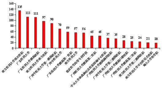 南方医科大学珠江医院招聘135人、广东医科大学招聘113人、广东医科大学附属医院招聘111人、南方医科大学南方医院招聘97人、广州中医药大学第一附属医院招聘90人、广州中医药大学招聘70人、广东药科大学附属第一医院招聘59人、南方医科大学招聘57人。