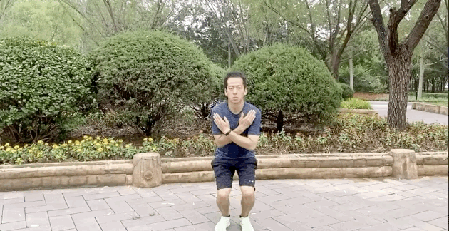 1 开始时半蹲至四分之一的位置,双手放置于前。