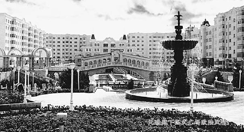 天通苑欧式风格的下沉式广场。摄于1999年。