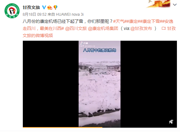8月17晚,受冷空气和湿润云团影响,位于四川省甘孜藏族自治州康定市折多山上的康定机场,迎来了2020年入秋后的第一场雪,大雪纷纷扬扬下了一夜。