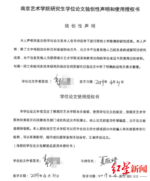 夏燕靖:我们学校是根据学术规范要求,按照国家教育部门规定,答辩前在中国知网上进行查重的,且学校对学生的论文会进行两次查重,合格以后才能进行答辩。她的论文是符合查重范围内标准的。答辩方面则是有答辩委员会审核其学术水准的,大家都在审。她的论文我批改过多次,她自己手上有论文批阅文稿多份可证,对学术要求、怎么做都有规范。