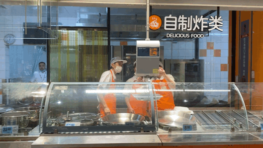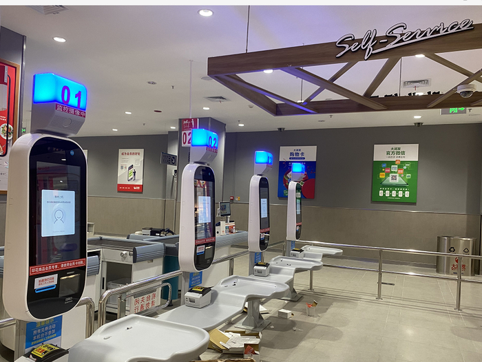 在全福店,除了收银员结账,同时设置了12台自助收银机,顾客可根据自己的需求进行自助结账,提升结算效率。