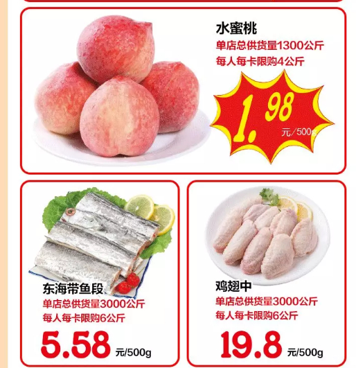 调整定位后,大润发重新调整了门店的产品结构。生鲜商品占比大大提升,果蔬、海鲜活鲜、冻品及加工自制的品类增加了不少,适合中高消费人群和线上销售。