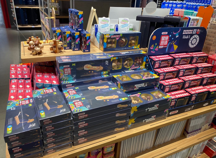 在文化用品区,大润发全福店增设了例如盲盒、手工艺品等潮流商品,满足更多年轻消费者的购物需求。